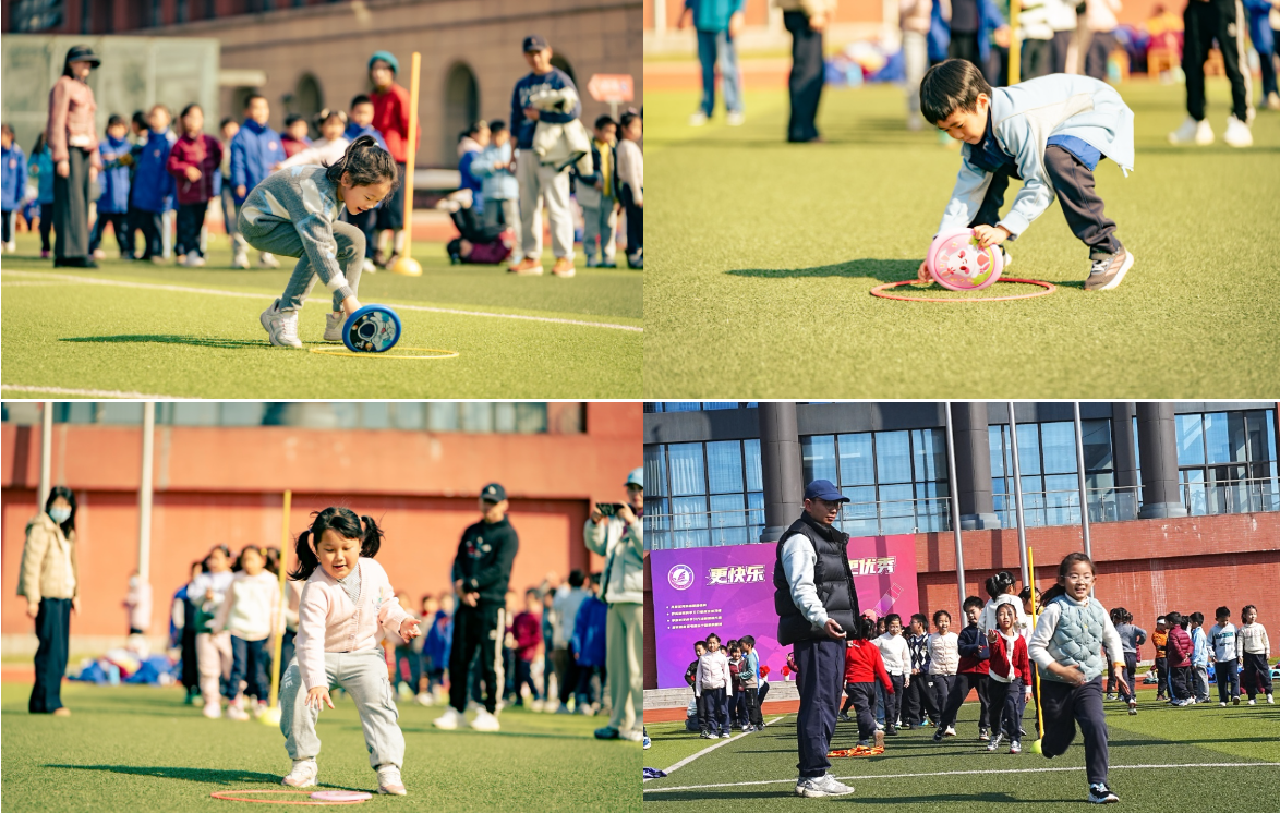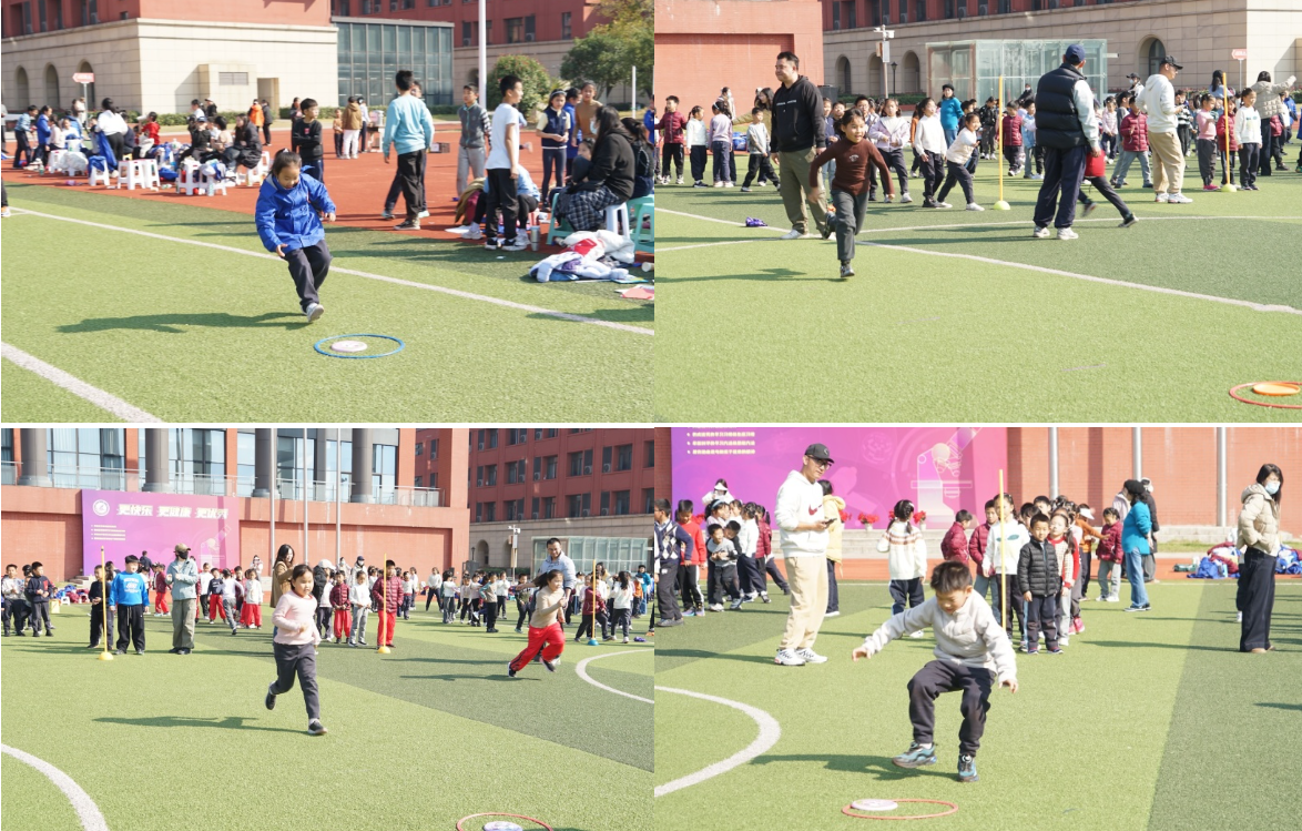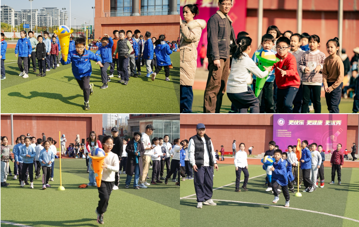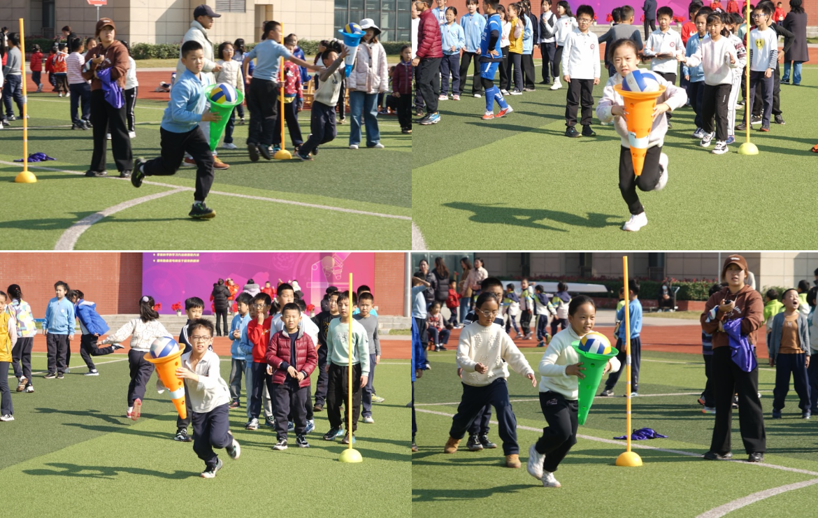 一、二年级的同学们化身 “运动小达人”,在“一钻到底” “翻物接力跑”等项目中努力拼搏。尤其是“夹球迎面接力赛”,真是紧张又有趣,大家小心翼翼地夹着足球,生怕掉落却又不甘落后,现场笑声与加油声此起彼伏。